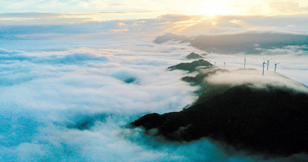 臺山風(fēng)車山出現(xiàn)壯美云海奇觀。
