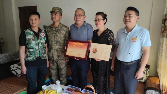 軍地慰問團(tuán)為轄區(qū)榮獲“戰(zhàn)備訓(xùn)練三等功”優(yōu)秀現(xiàn)役軍人楊澤棟家庭送喜報(bào)