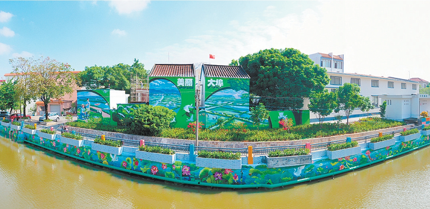 ????大埠村是省“百千萬工程”首批典型村之一。該村通過協(xié)調(diào)各方資源,籌措資金,將村內(nèi)民房墻面利用墻繪裝扮一新。今年7月至10月,廣州美術(shù)學(xué)院大學(xué)生“百千萬工程”突擊隊(duì)、華南理工大學(xué)“百千萬工程”突擊隊(duì),以及深圳泰極貓繪畫藝術(shù)有限公司在該村組織繪制墻繪,面積超300平方米,主題涵蓋田美魚肥、豐景大埠、三夾騰龍等方面。