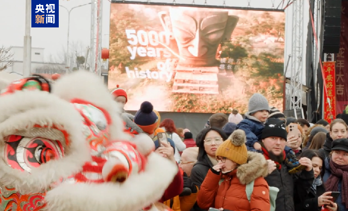 中央廣播電視總臺蛇年春晚宣傳片在匈牙利吸引大量游客駐足觀看,在喜氣洋洋的氣氛和獨特魅力的中華文化中感受中國春節(jié)的熱烈氛圍。
