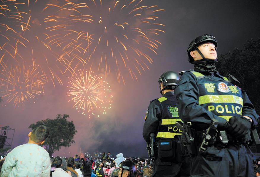 ????春節(jié)期間,江門市公安機關(guān)多次召開會議研究部署春節(jié)安保工作,確保各項工作落實落細(xì)。1月28日至2月4日,全市公安機關(guān)啟動高等級勤務(wù),嚴(yán)格落實領(lǐng)導(dǎo)帶班和聯(lián)勤指揮,每日組織開展情報研判會商,實時掌握社會面治安動態(tài)。巡特戰(zhàn)、治安、交警部門結(jié)合人流、車流高峰時段,強化旅游景區(qū)、煙花燃放區(qū)域、人員密集場所、高速公路等重點部位巡防管控和交通疏導(dǎo)工作。全市公安機關(guān)平均每日安排5000多名警力值班值守,確保及時妥善處置各類突出敏感案事件。