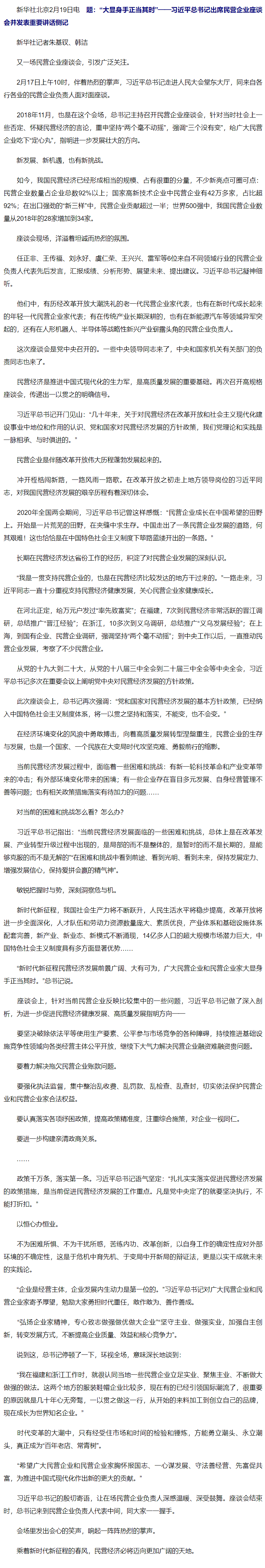 “大顯身手正當(dāng)其時(shí)”——習(xí)近平總書記出席民營(yíng)企業(yè)座談會(huì)并發(fā)表重要講話側(cè)記