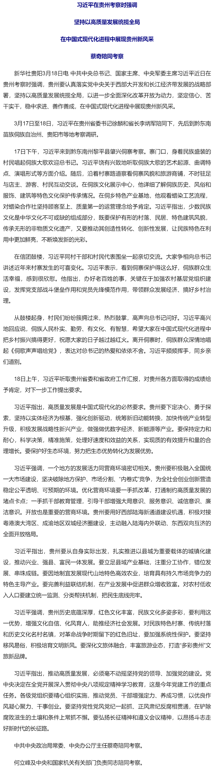 習(xí)近平在貴州考察時強調(diào) 堅持以高質(zhì)量發(fā)展統(tǒng)攬全局 在中國式現(xiàn)代化進程中展現(xiàn)貴州新風(fēng)采