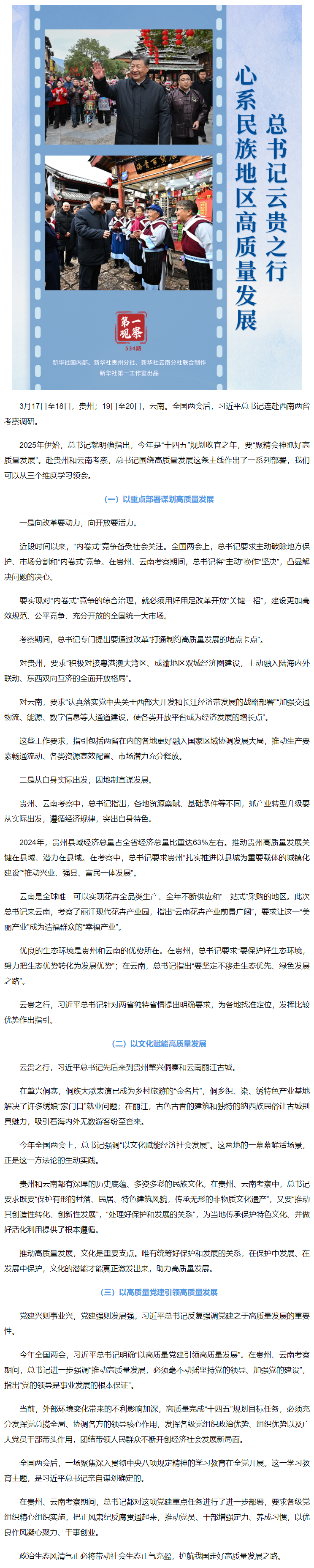 第一觀察丨總書記云貴之行心系民族地區(qū)高質(zhì)量發(fā)展