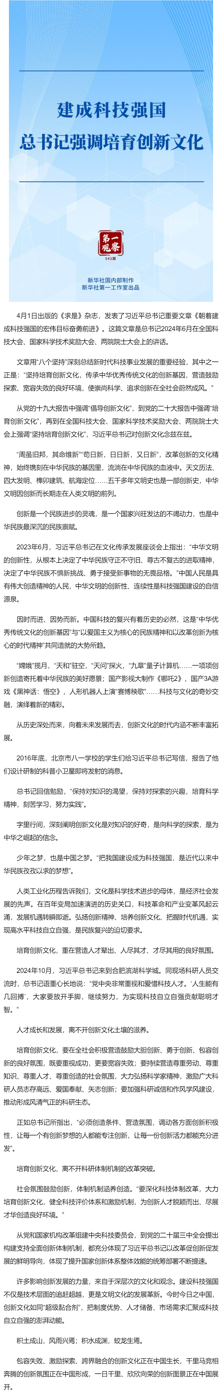 第一觀察|建成科技強(qiáng)國,總書記強(qiáng)調(diào)培育創(chuàng)新文化