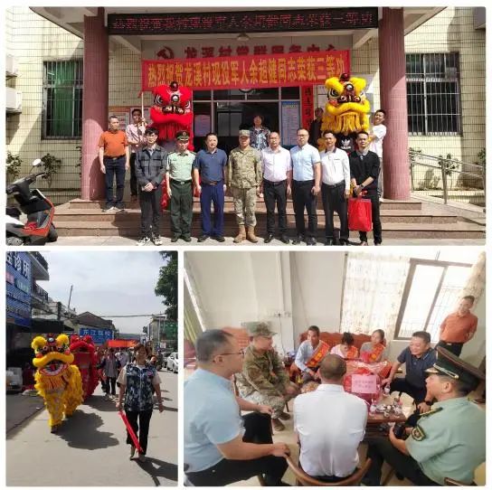 喜報(bào)傳佳音,軍功耀家門(mén)。近日,解放軍空軍某部隊(duì)、蓬江區(qū)人武部、蓬江區(qū)退役軍人事務(wù)局、杜阮鎮(zhèn)人民鎮(zhèn)府武裝部、龍溪村委等部門(mén)組成軍地聯(lián)合送喜報(bào)隊(duì)伍,為榮獲三等功的杜阮鎮(zhèn)龍溪村現(xiàn)役軍人余超健家庭送上立功喜報(bào),讓軍人軍屬真切感受到全社會(huì)的尊重與關(guān)愛(ài)。