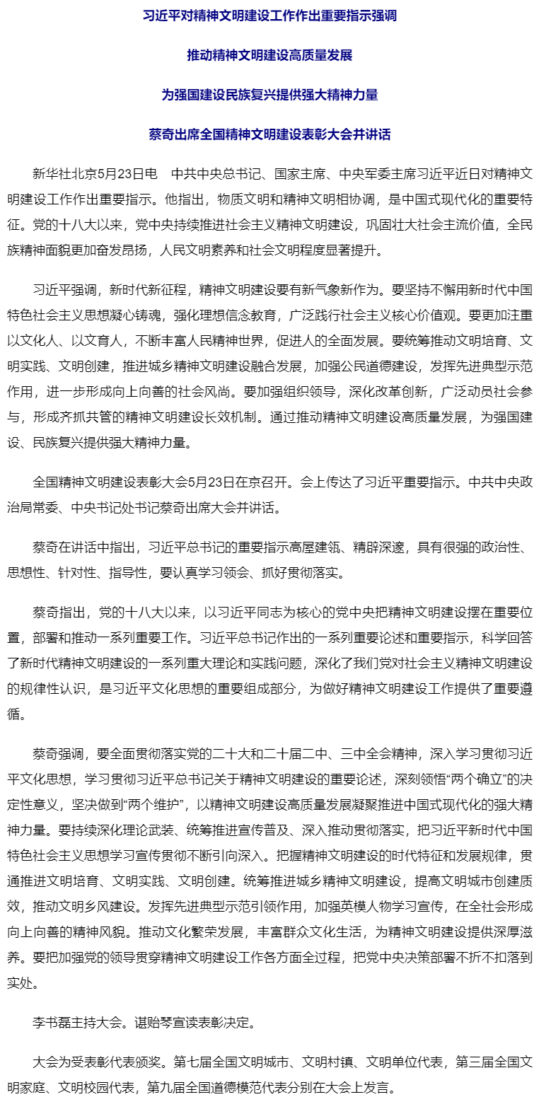 習(xí)近平對精神文明建設(shè)工作作出重要指示