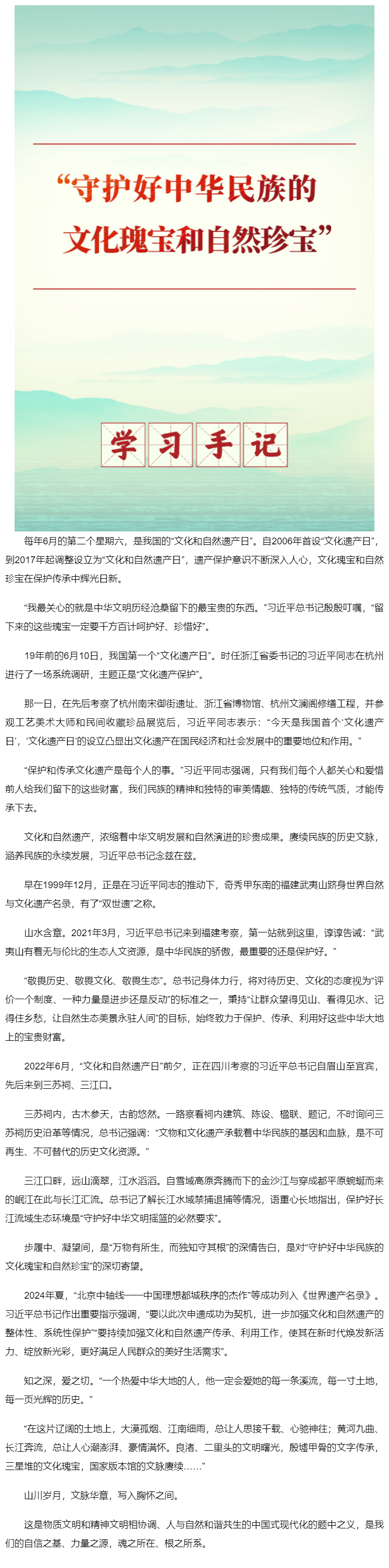 學(xué)習(xí)手記丨“守護(hù)好中華民族的文化瑰寶和自然珍寶”