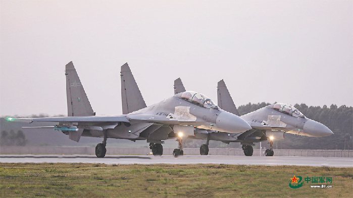 天陰沉沉的,淅淅瀝瀝下起小雨。不過,這并沒有影響正在進(jìn)行的飛行訓(xùn)練。一架架戰(zhàn)機(jī)從某機(jī)場呼嘯升空,向著預(yù)定訓(xùn)練空域飛去。