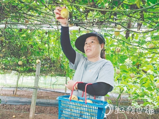 ????盛夏時(shí)節(jié),新會(huì)厚承現(xiàn)代農(nóng)業(yè)生態(tài)園的黃金百香果上市。該生態(tài)園位于崖門鎮(zhèn),生態(tài)園工作人員莫冬瓊介紹,成熟的黃金百香果表皮呈金黃色,采摘時(shí)只需輕碰果蒂即可摘下。黃金百香果比普通品種更香甜,預(yù)計(jì)采摘期持續(xù)至8月中旬。暑假期間,有不少家長(zhǎng)帶著孩子走進(jìn)生態(tài)園采摘黃金百香果,感受田園生活。