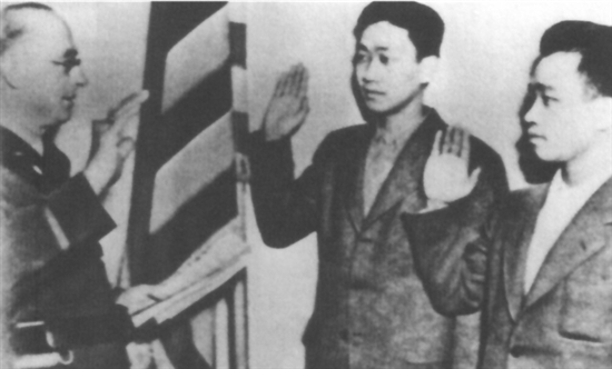 ????1941年12月8日(夏威夷時(shí)間12月7日),日本空軍對(duì)美國(guó)設(shè)在太平洋夏威夷群島珍珠港的??哲娀匕l(fā)動(dòng)突然襲擊,美國(guó)太平洋艦隊(duì)遭毀滅性打擊。次日,美國(guó)正式對(duì)日本宣戰(zhàn),太平洋戰(zhàn)爭(zhēng)爆發(fā)。此后,美國(guó)政府征召華人入伍。一時(shí)間,美國(guó)各大城市唐人街出現(xiàn)了華僑華人送子報(bào)名參軍的熱潮,其中就有不少五邑籍子弟的身影。據(jù)美國(guó)征兵總局統(tǒng)計(jì),二戰(zhàn)期間,在美國(guó)陸軍服役的華僑華人超過(guò)1.3萬(wàn)人,占美國(guó)華僑華人總數(shù)的17%,是美國(guó)各族裔參軍人數(shù)比例最高的族裔之一。