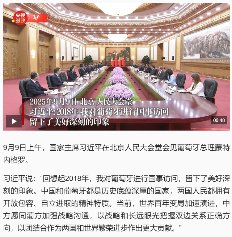 習近平:2018年 我對葡萄牙進行國事訪問 留下了美好深刻的印象