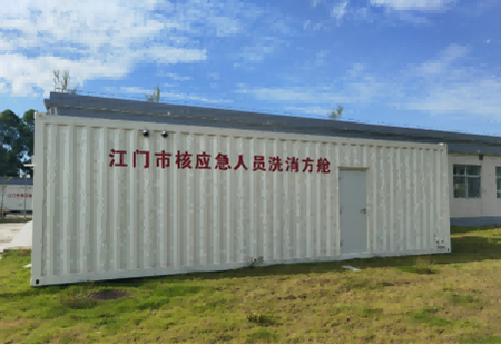 該項目在全省首開 “平戰(zhàn)一體、共建共享” 先河,以臺山市中醫(yī)院赤溪分院現(xiàn)有基礎(chǔ)設(shè)施為依托,通過場地硬化、管道埋設(shè)、設(shè)備安裝等基建工程,建成了移動式去污洗消方艙(主艙1個+輔艙1個)、固定式車輛洗消通道、人員門式檢測裝置、伸縮式輻射檢測儀和手持式核素定性檢測儀等核心設(shè)施,配套背式噴霧器、鼓風(fēng)機(jī)、消防站等輔助設(shè)備,實現(xiàn)人員從初檢、分流、去污到復(fù)檢的閉環(huán)處理,滿足臺山核電廠煙羽應(yīng)急計劃區(qū)核污染洗消需求,初步形成輻射監(jiān)測與去污處置能力,填補(bǔ)了當(dāng)?shù)貓鐾夂藨?yīng)急設(shè)施的空白。