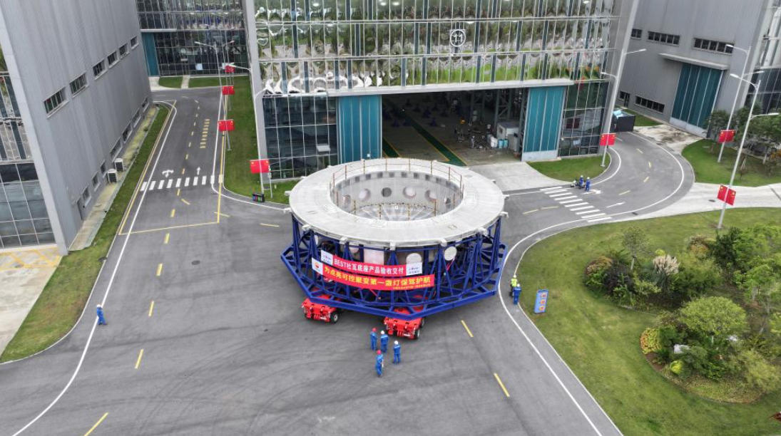 10月1日上午,位于安徽合肥未來(lái)大科學(xué)城的緊湊型聚變能實(shí)驗(yàn)裝置(BEST)建設(shè)現(xiàn)場(chǎng)傳來(lái)好消息:該裝置主機(jī)首個(gè)關(guān)鍵部件——杜瓦底座成功落位安裝,標(biāo)志著項(xiàng)目主體工程建設(shè)步入新階段,部件研制和工程安裝開(kāi)啟“加速度”。