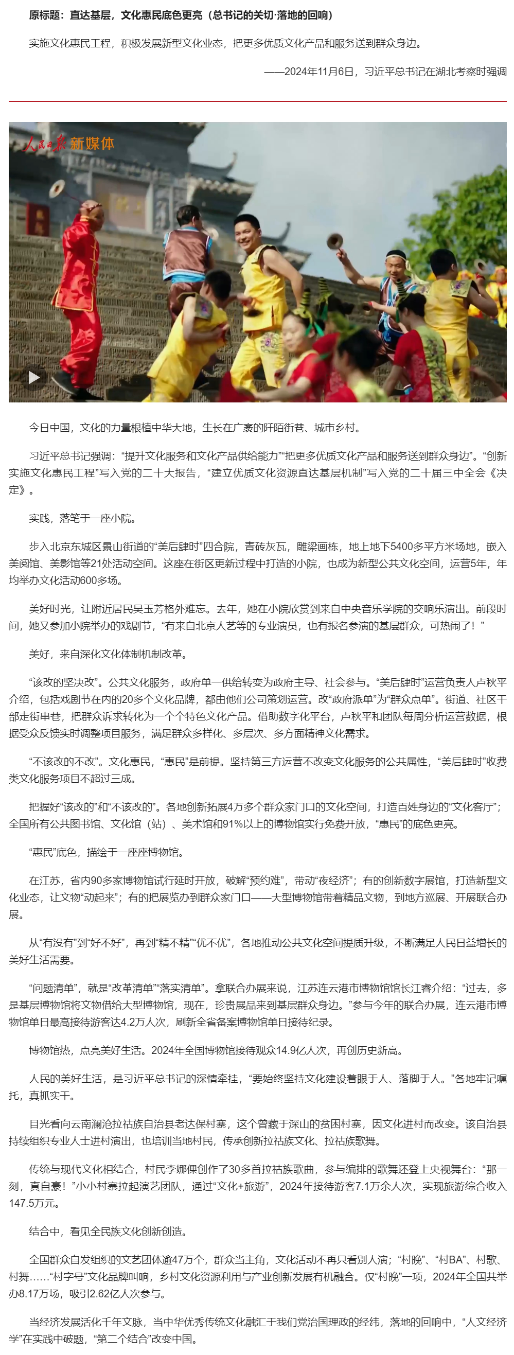 總書記的關切·落地的回響 | 直達基層,文化惠民底色更亮
