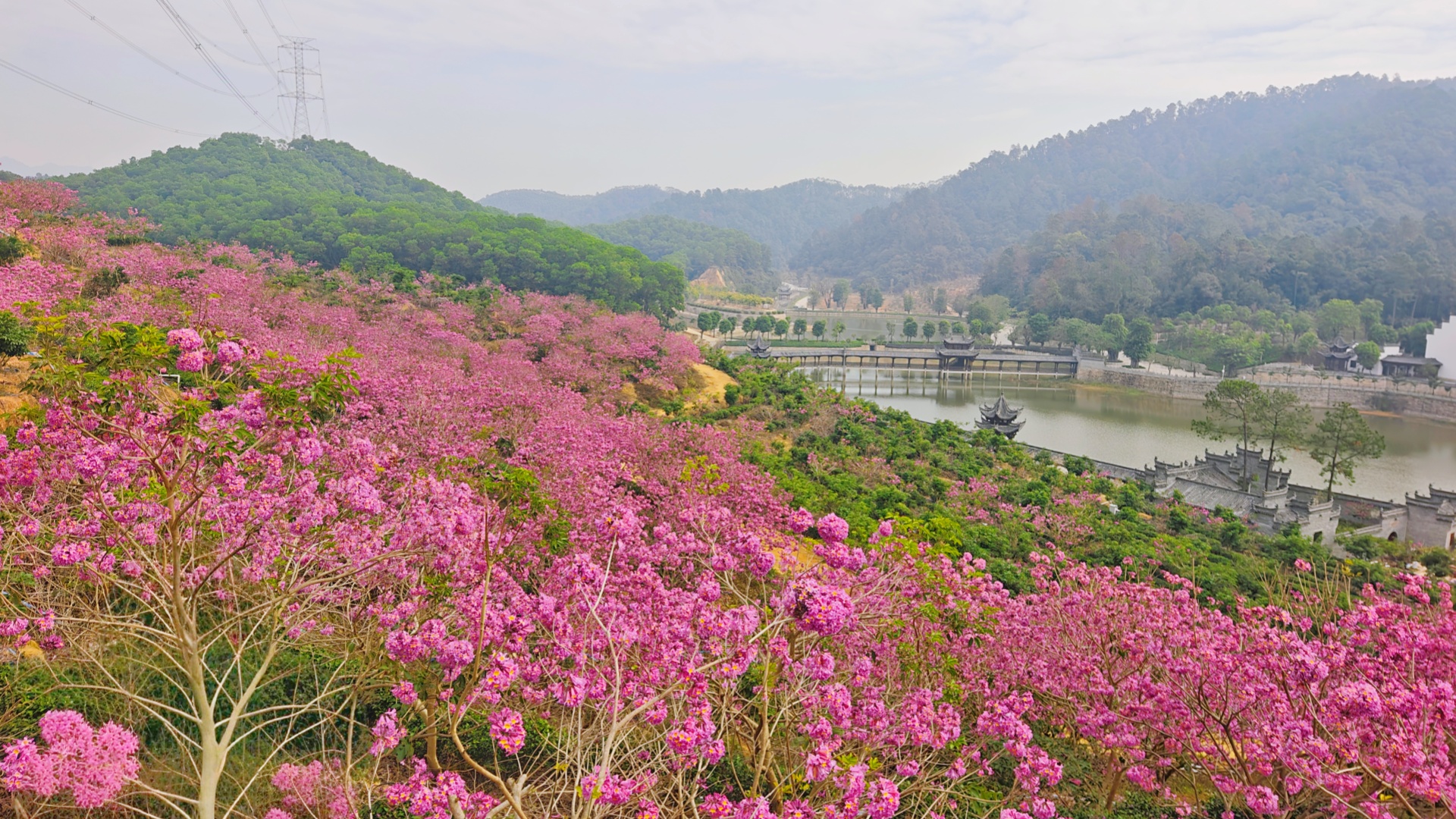 目前,成片的紫花風(fēng)鈴木已經(jīng)進(jìn)入了最佳觀賞期,不少聞訊而來的游客穿梭在這片童話般的花海里,用鏡頭定格下最美的瞬間。從遠(yuǎn)處望去,連綿的山坡已被柔軟如云的粉紫色完全覆蓋。成片的花樹匯聚成海,在冬日陽光下,泛起一層朦朧的、夢幻般的光暈,宛如天地間一幅輕柔的油畫,又像是一片墜入人間的紫色云霞,氣勢溫柔卻磅礴,為寒冷的冬日增添了一抹亮麗的景致。