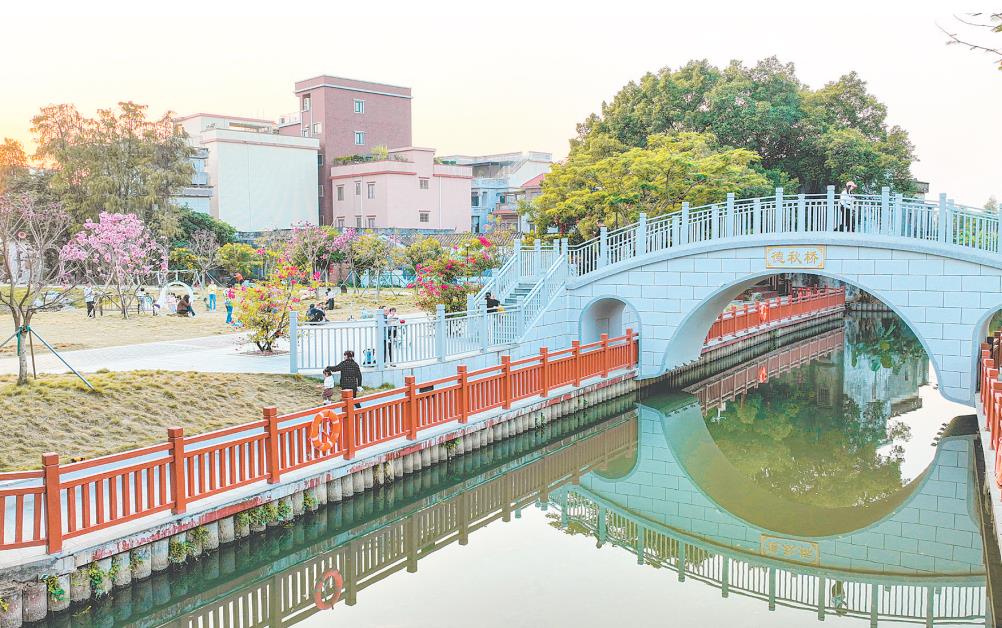 ????此外,高村村充分發(fā)揮僑村優(yōu)勢,聯(lián)動鄉(xiāng)賢與企業(yè)共謀民生發(fā)展:澳門荷塘同鄉(xiāng)會會長黃德秋捐贈25萬港幣建造德秋橋,鄉(xiāng)賢基金會投入12萬元升級村道基礎(chǔ)設(shè)施,“鄉(xiāng)賢潤桑梓”的善舉成為全區(qū)示范。同時(shí),在熱心企業(yè)中交四航局、江門市才賦企業(yè)管理咨詢有限公司、廣東正美燈飾照明有限公司等的支持下,美化“一河兩岸”燈飾亮化工程、提升村內(nèi)人居環(huán)境,并在河岸邊、休閑公園等地栽種黃槐、水杉等樹木1000多棵,全力營造綠美水鄉(xiāng)氛圍。