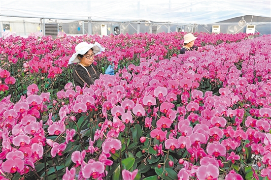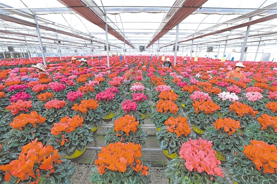 ????春節(jié)臨近,山東省青島市即墨區(qū)靈山花卉文化產(chǎn)業(yè)園的年宵花迎來生產(chǎn)和銷售旺季,花卉大棚內(nèi)的蝴蝶蘭、長(zhǎng)壽花、仙客來等競(jìng)相綻放,花農(nóng)們按照訂單外運(yùn)各類花卉,供應(yīng)節(jié)日市場(chǎng)。
