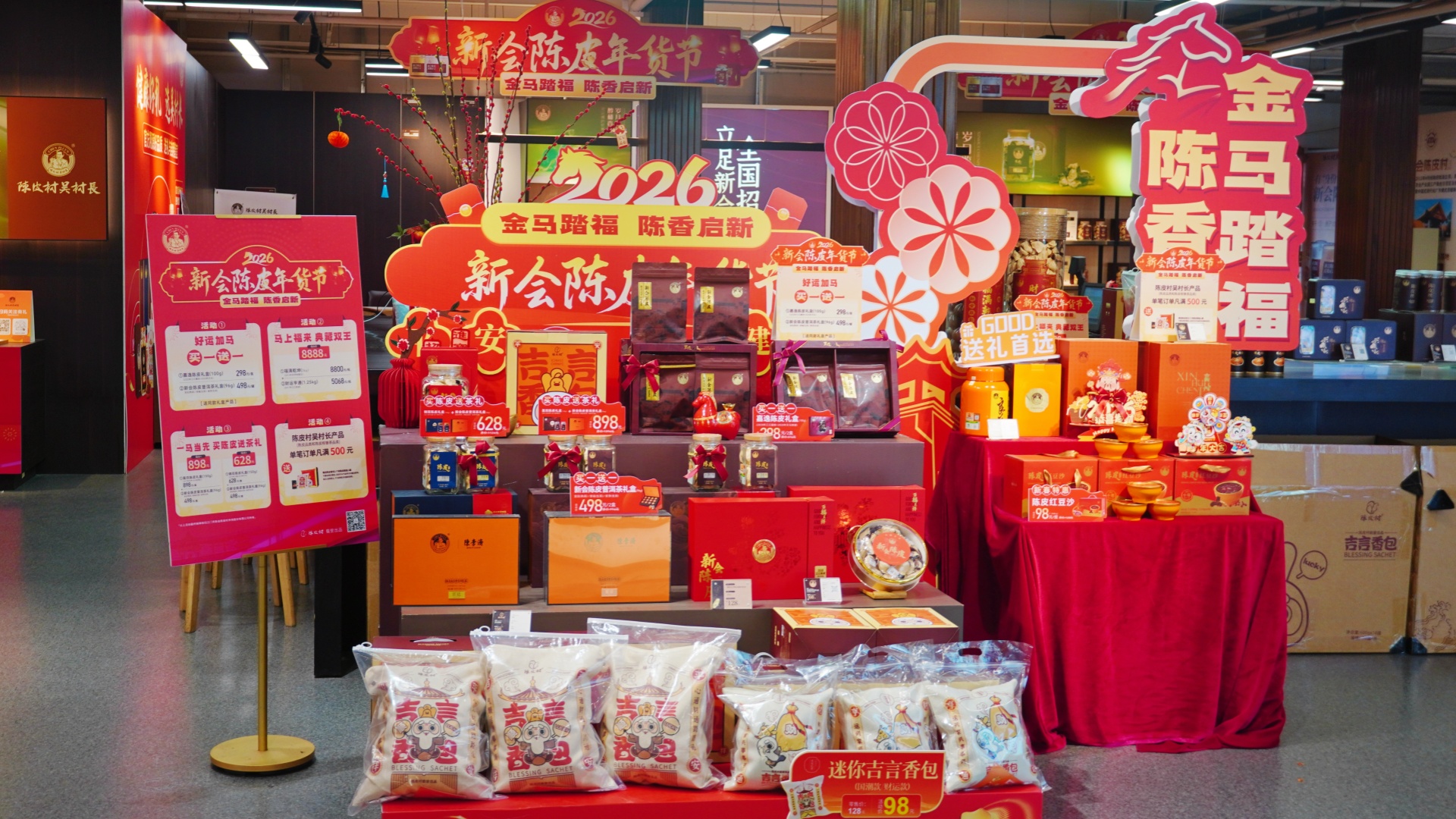 新會陳皮村“吳村長”旗艦店舉辦新會陳皮年貨節(jié)。