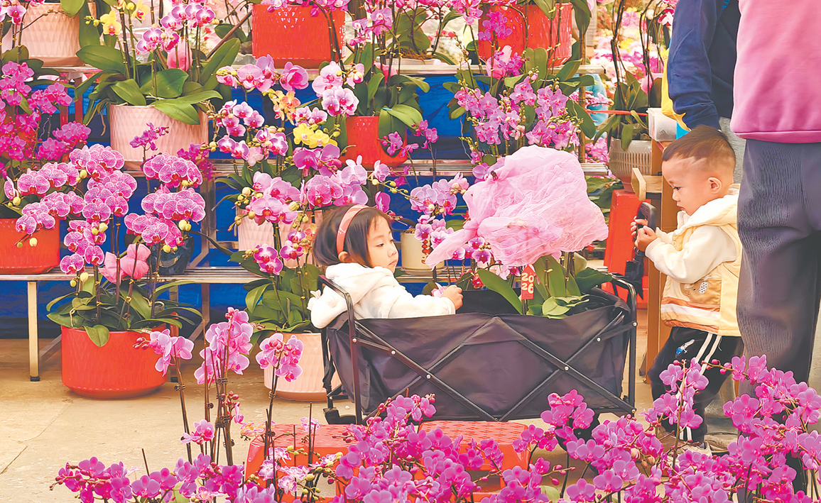 迎春花市擺滿了蝴蝶蘭、桃花、水仙等多種鮮花,為江門增添了濃濃年味。郭永樂 攝