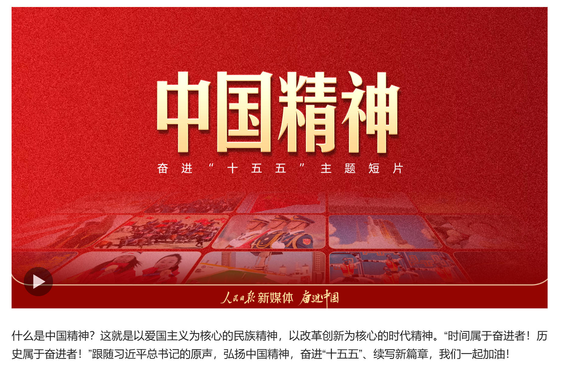 奮進(jìn)“十五五”主題短片《中國(guó)精神》