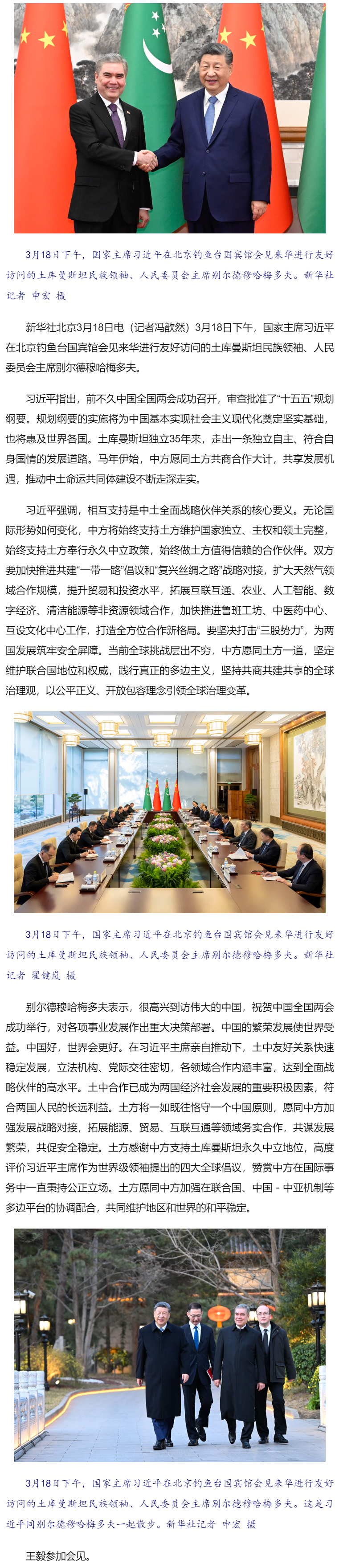 習(xí)近平會見土庫曼斯坦民族領(lǐng)袖、人民委員會主席別爾德穆哈梅多夫