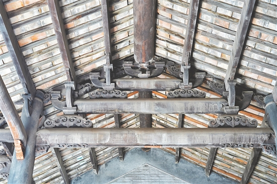 ????值得一提的是,青云書院較好保留了清嘉慶十五年重修時的原有結(jié)構(gòu),同時留存有清乾隆時期乃至明代的部分構(gòu)件與形制。以前廊兩次間月梁上的雕花馱墩斗栱為例,其采用火山角爍巖(俗稱“鴨屎石”)制作,此類石材正是清乾隆及更早時期廣泛使用的建筑材料。