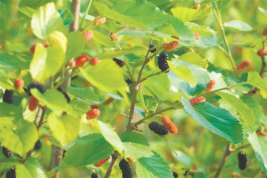 在采摘現(xiàn)場,記者看到不少游客都是全家出動(dòng),大家提著小籃子,在桑樹間忙碌地穿梭著,不一會(huì)兒就裝滿了一籃子桑果。孩子們一邊采摘,一邊品嘗,臉上洋溢著幸福的笑容。
