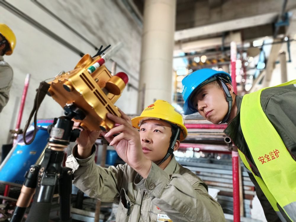 ??2024年4月23日,中國核電工程有限公司的企業(yè)導(dǎo)師和項目負(fù)責(zé)人現(xiàn)場指導(dǎo)朱澳(左一)。(李海萁 攝)