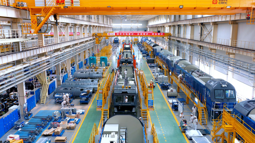 ??2025年8月12日,在中車大連機(jī)車車輛有限公司,工作人員正在進(jìn)行總裝作業(yè)。(受訪單位供圖)