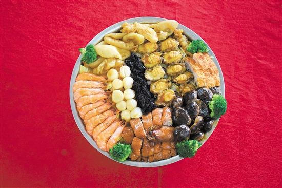盆菜,“一盆一宴,薈萃百味”,因多盛于木盆或錫盆而得名。據(jù)傳起源于南宋末年,當(dāng)?shù)孛癖妼⒓抑凶钫滟F的食物貢獻(xiàn)出來(lái),“煮盆菜,犒皇師”流傳甚廣。經(jīng)過(guò)幾百年來(lái)南粵人的總結(jié)、精研與傳承,盆菜食材越來(lái)越講究、制作技藝越來(lái)越精湛。