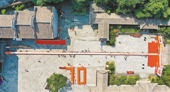 9月28日上午,蓬江區(qū)文藝界慶祝新中國成立70周年《愛黨愛國愛蓬江》70米書畫長卷創(chuàng)作活動(dòng)在陳白沙書院舉行。主辦方引導(dǎo)23名書法家、9名美術(shù)家以書畫為媒,現(xiàn)場(chǎng)創(chuàng)作70米書畫長卷,向市民展示習(xí)近平總書記治國理政名言和本土優(yōu)秀文藝作品,為慶祝新中國成立70周年?duì)I造良好的文化氛圍。