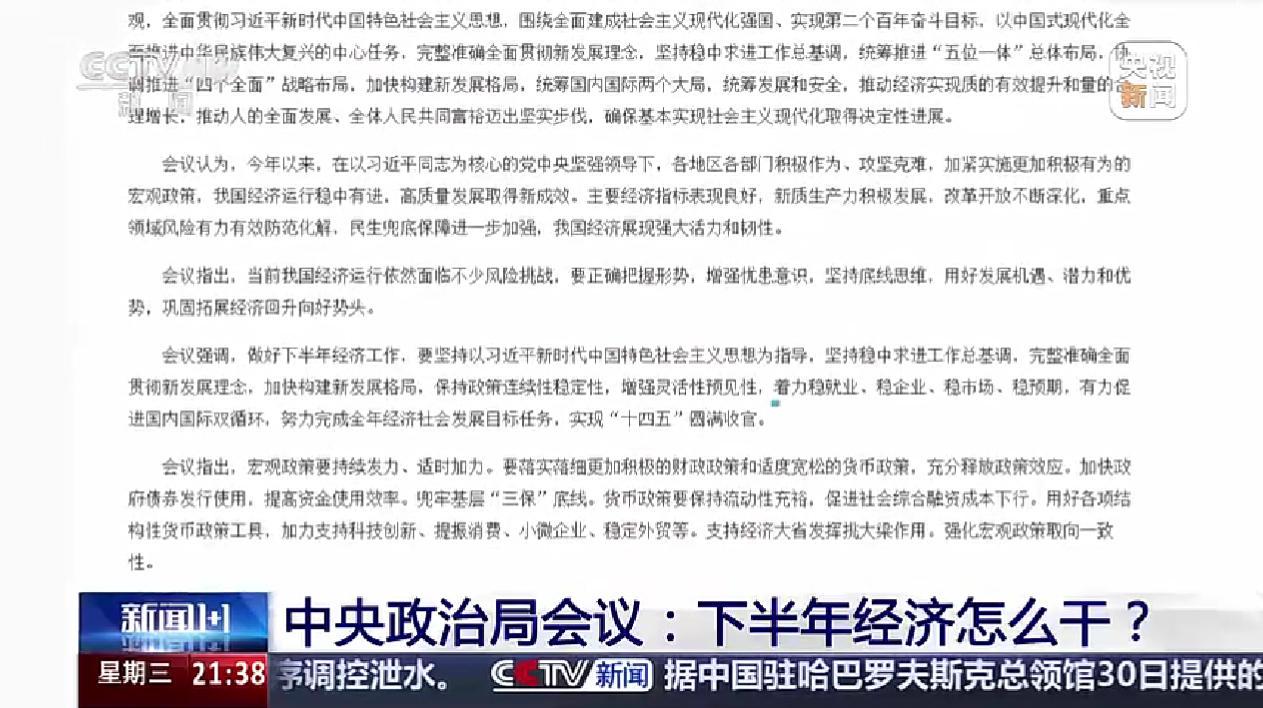 中央政治局會議:下半年經(jīng)濟怎么干?