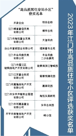 ????2023年江門(mén)市高品質(zhì)住宅小區(qū)評(píng)選獲獎(jiǎng)名單出爐!