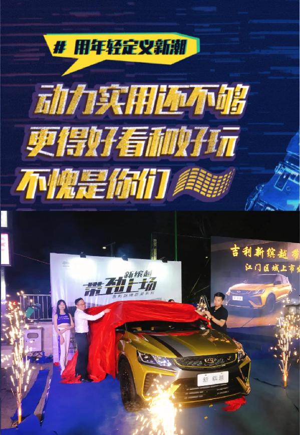 ??? 2021年9月18日下午,吉利新繽越·帶勁上場(chǎng)江門(mén)區(qū)域上市發(fā)布會(huì)在江門(mén)和興廣場(chǎng)隆重舉行,現(xiàn)場(chǎng)粵西大區(qū)代表及江門(mén)鑫源、江門(mén)鑫輝領(lǐng)導(dǎo)和眾多客戶(hù)共同見(jiàn)證新繽越·帶勁上場(chǎng)的精彩盛況。