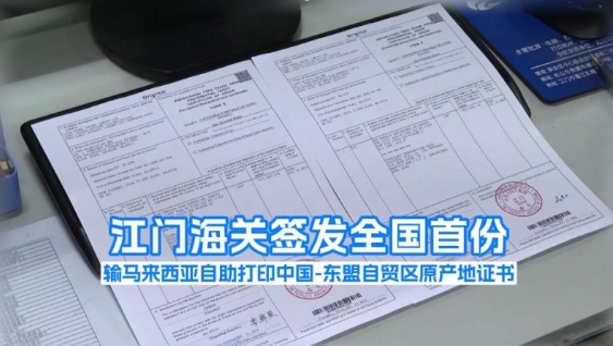 江門海關簽發(fā)全國首份輸馬來西亞自助打印中國-東盟自貿(mào)區(qū)原產(chǎn)地證書[2024-09-01 12:41]